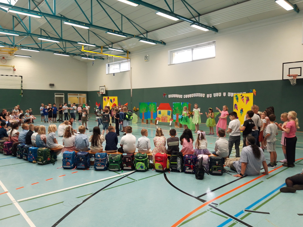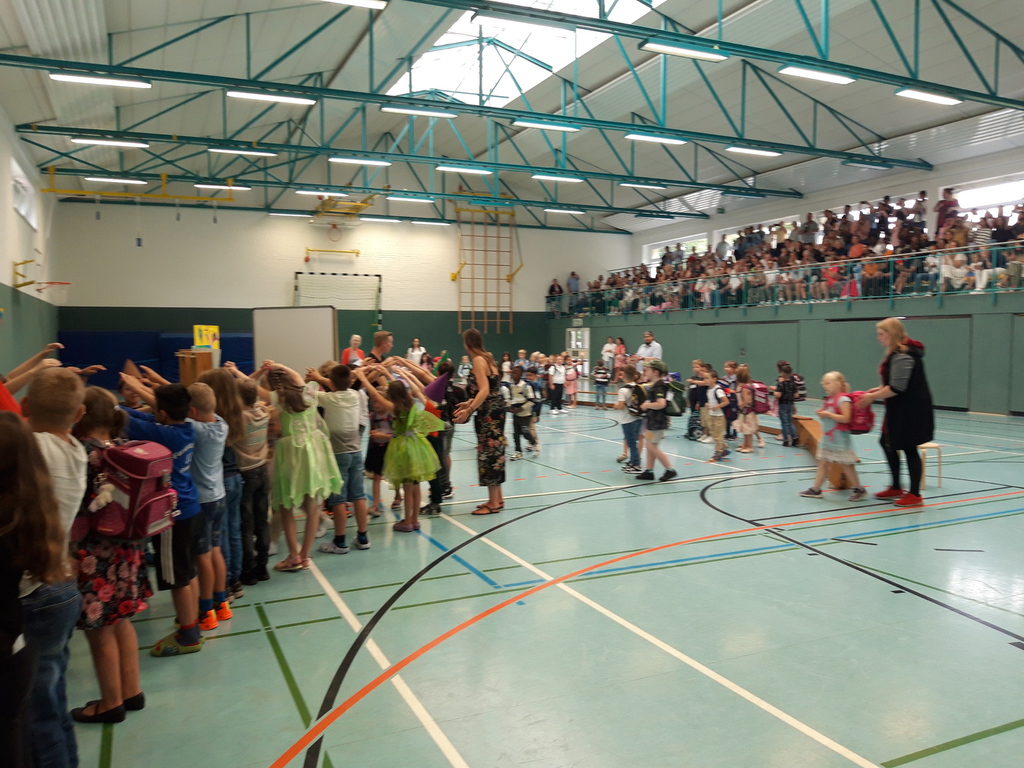 Auch dieses Jahr dürfen wieder viele neue Erstklässler begrüßen. Am Standort Barme kamen die Schulanfänger in die Eulenklasse (1ba) von Frau Kastens, in Dörverden wurden die Kinder der Koalaklasse (1a) von Herrn Hentrop und der Löwenklasse (1b) von Frau Kislat zugeteilt. Die dritten Klassen haben für die Schulanfänger ein kleines Theaterstück aufgeführt.