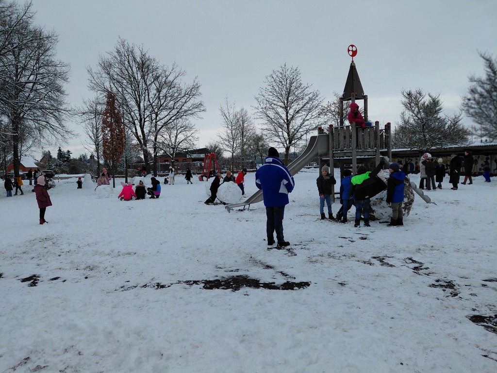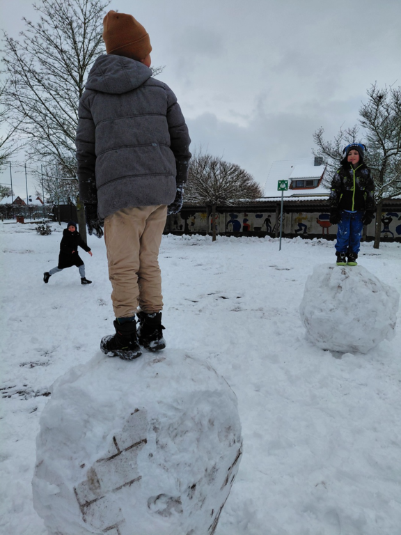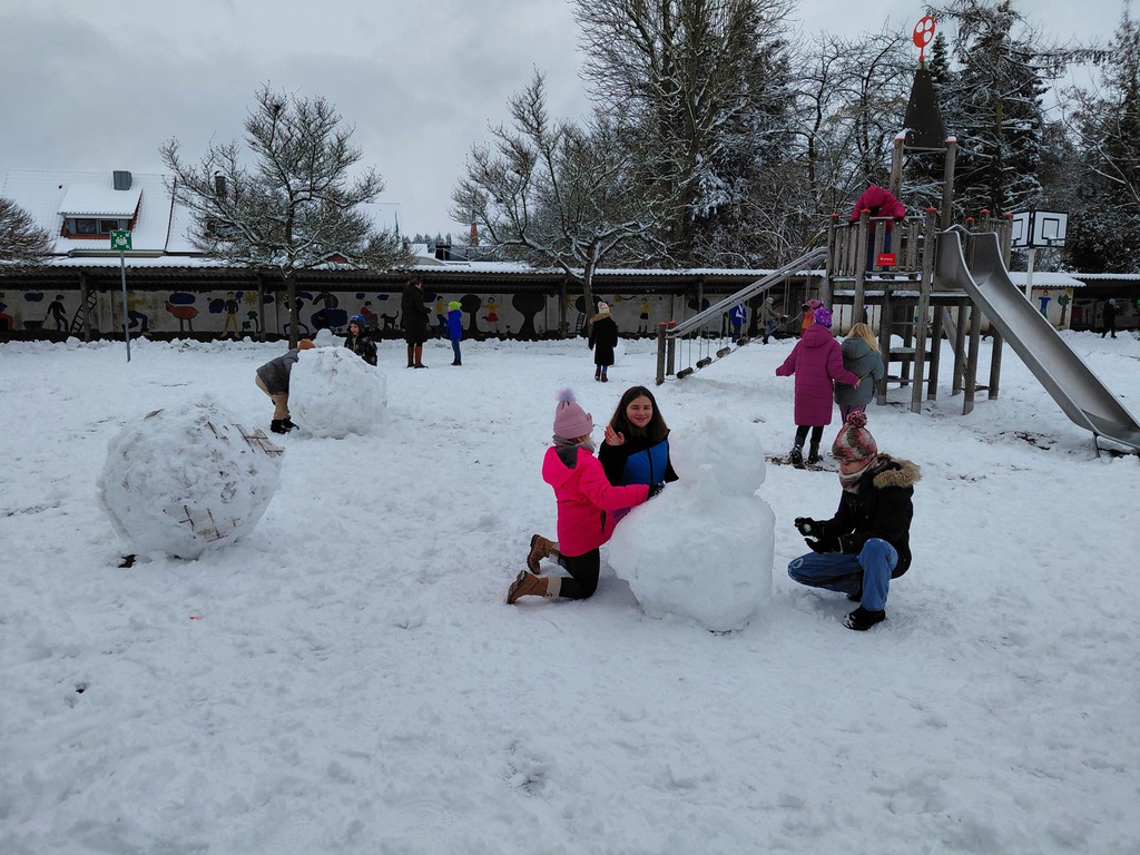 Eine Kunstausstellung der besonderen Art ist derzeit auf dem Pausenhof zu sichten. Schneeskulpturen, die oft weitaus größerer sind, als die Erschaffer selbst zieren nun den Pausenhof. Bei der Terminfindung für die Besichtigung dieser Ausstellung ist aber Eile geboten. Es handelt sich hierbei um eine saisonale Ausstellung, die voraussichtlich Anfang Februar wieder abgetragen wird.